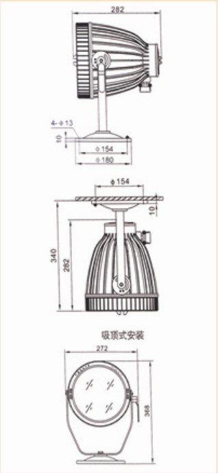 注:該系列標(biāo)準(zhǔn)配置:150W金屬鹵化物燈。也可根據(jù)需要配用光源;70W,100W金鹵燈或70W,100W高壓鈉燈。