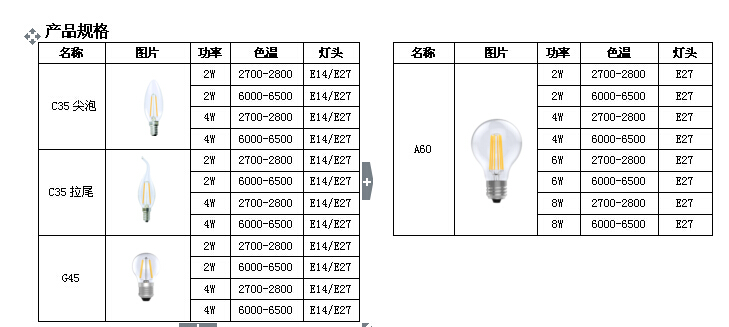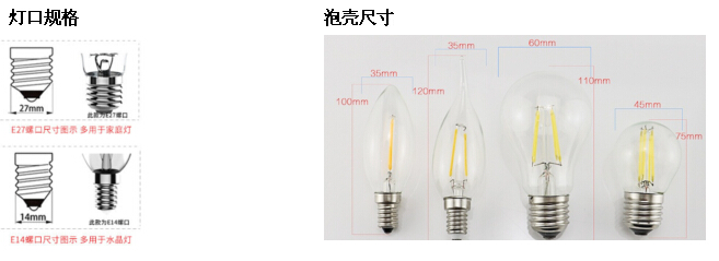 4.國際通用E27 E14燈口,標準泡殼完全替代傳統鎢絲燈泡