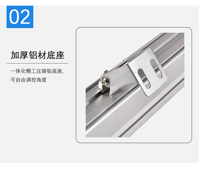 2、一體化精工壓鑄鋁底座,可自由調(diào)控角度