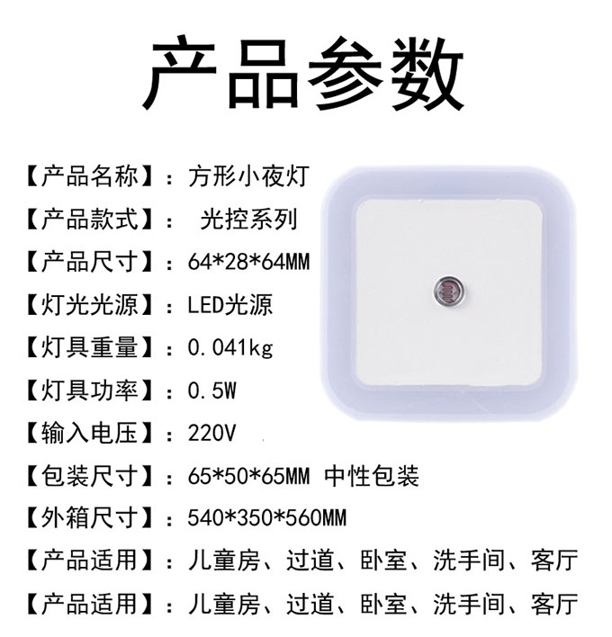 * 表示必填采購:光控感應方形小夜燈